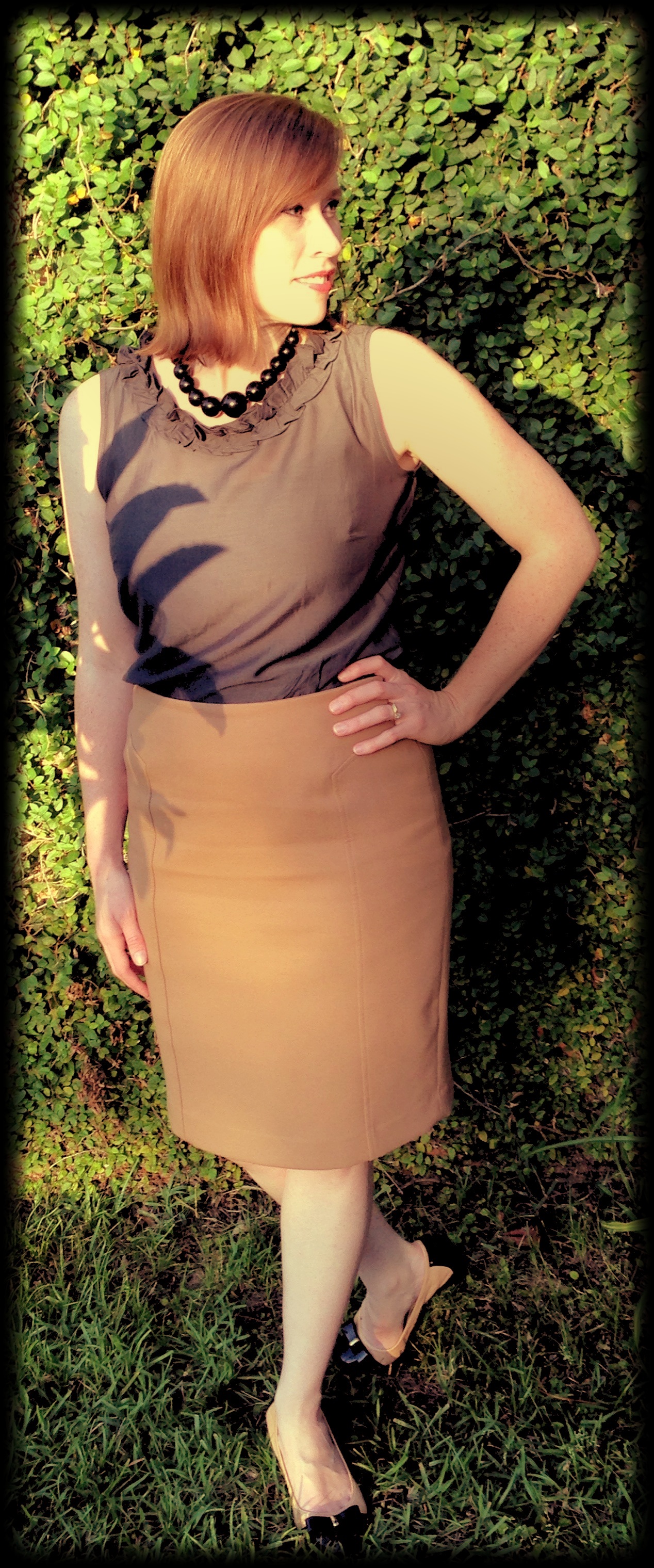 RTW: Nordstrom pencil skirt, Tessyla necklace, Cole Haan shoes