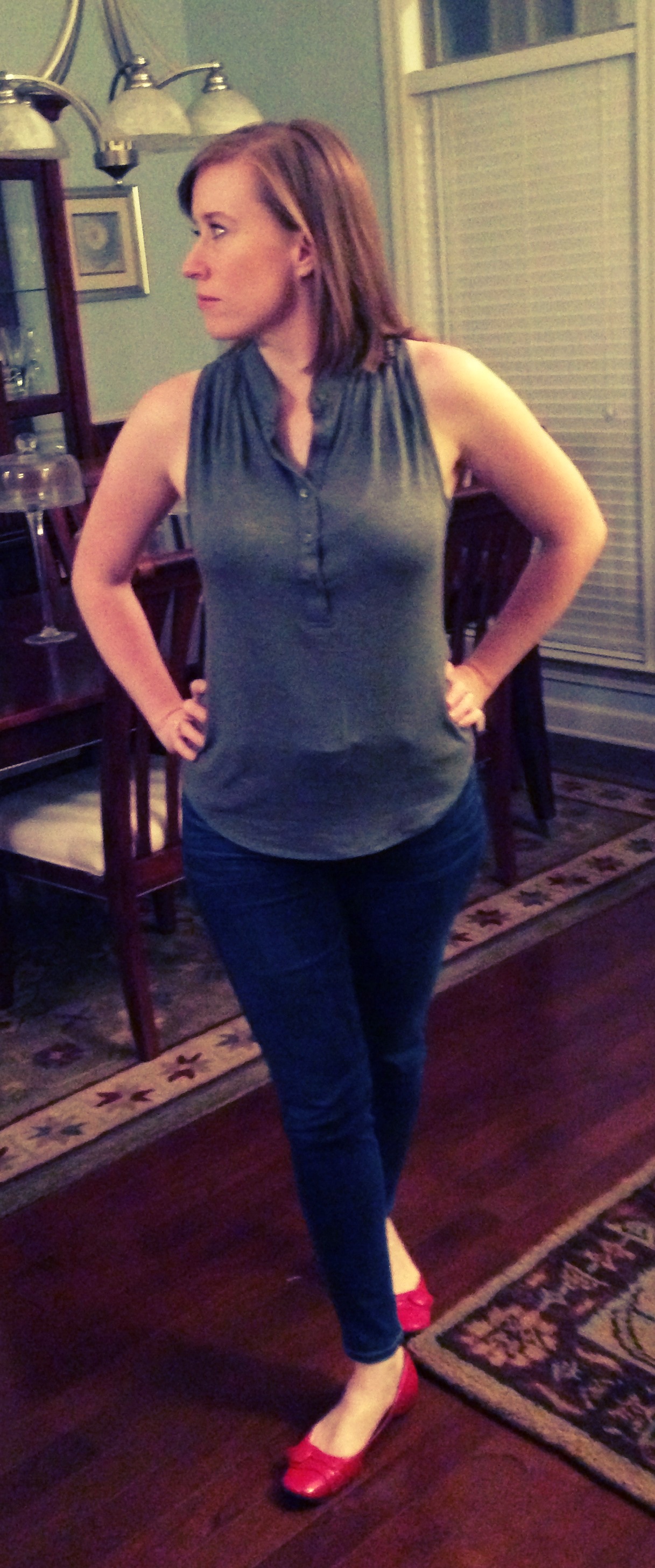Me Made: Trina Turk knit tank altered to open up an extra buttonhole