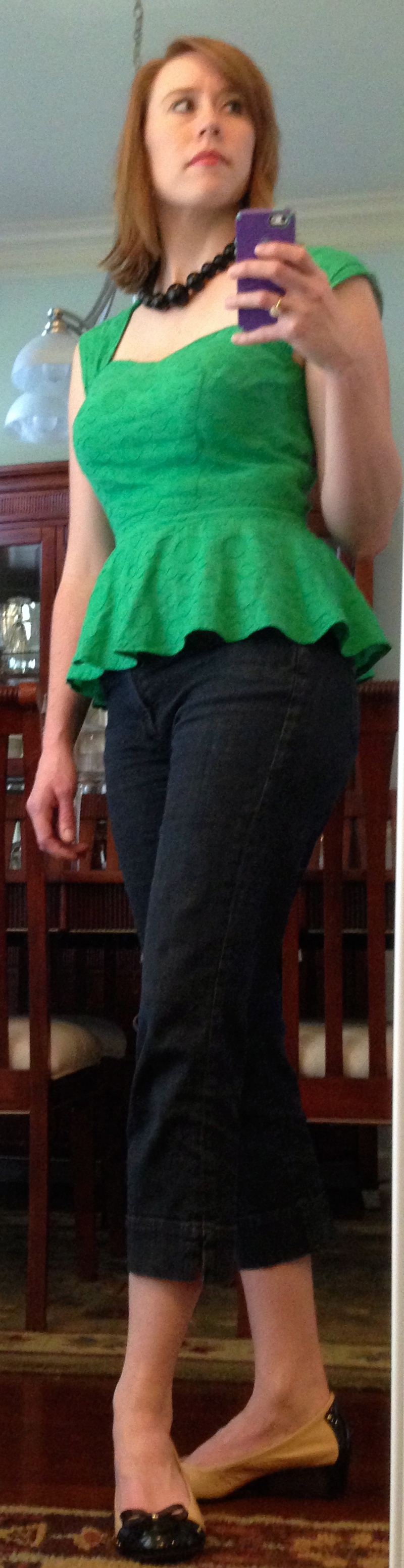You look adorable! I really love the green peplum top!