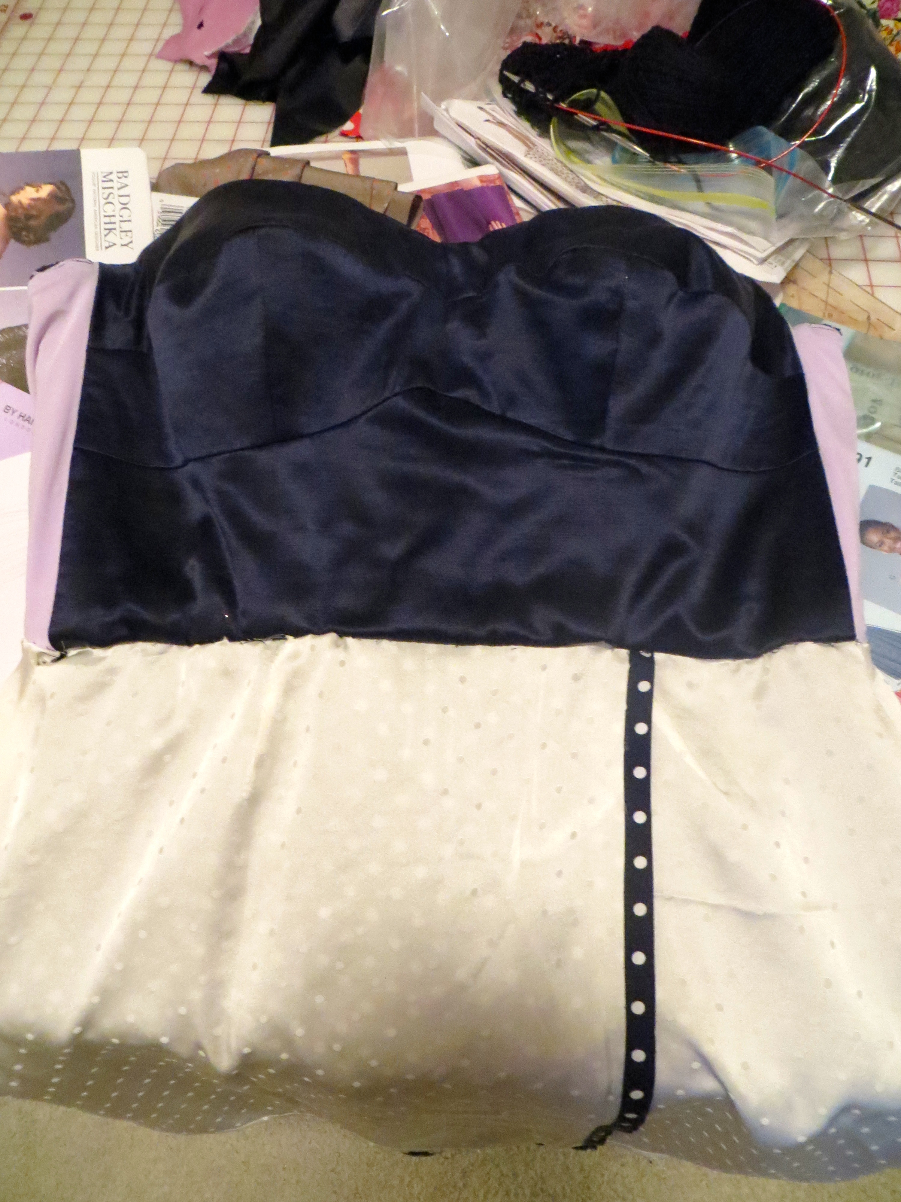 Since this layer wouldn’t show in the final dress, I sewed it with leftover bobbins in random colors.