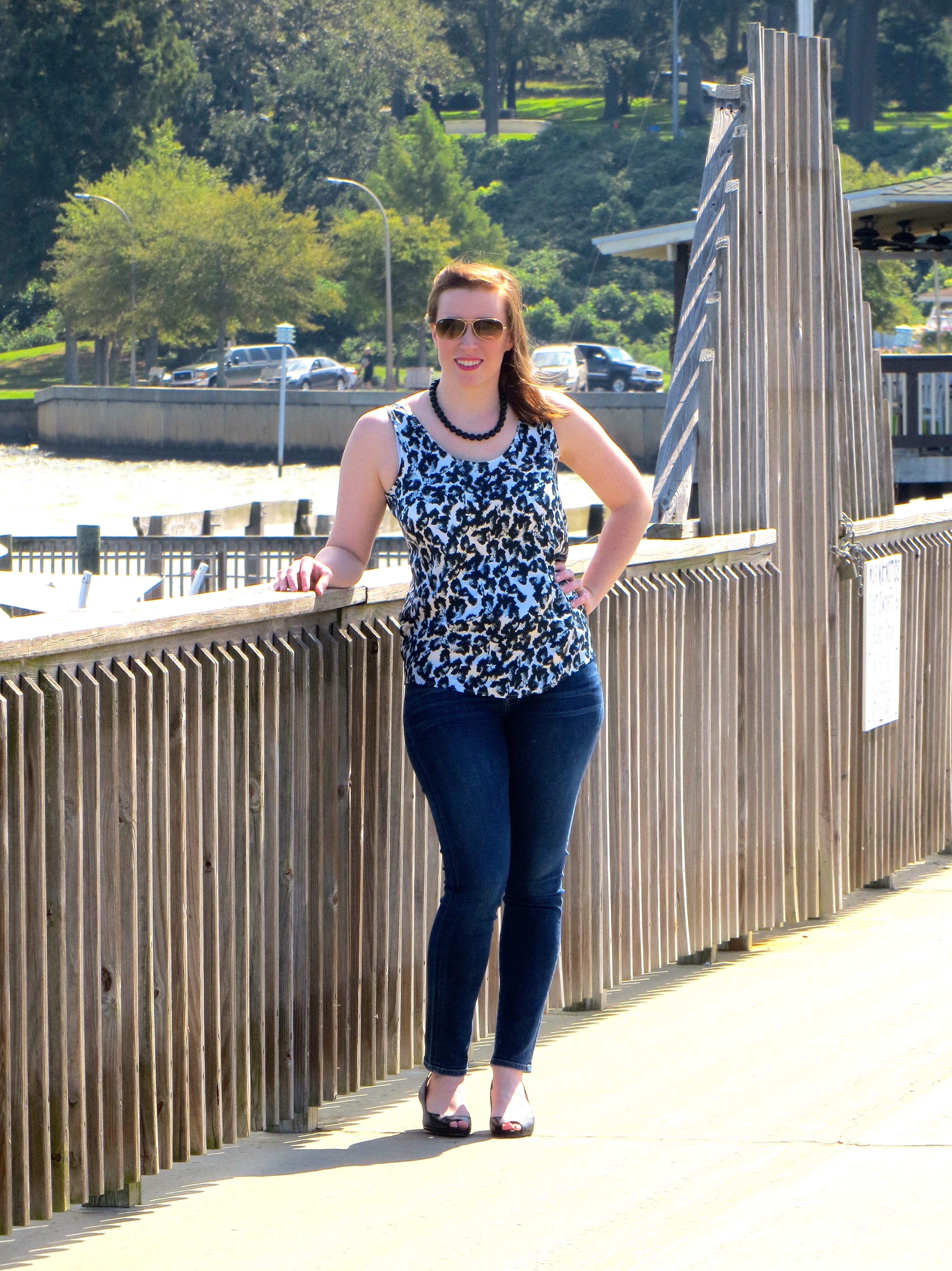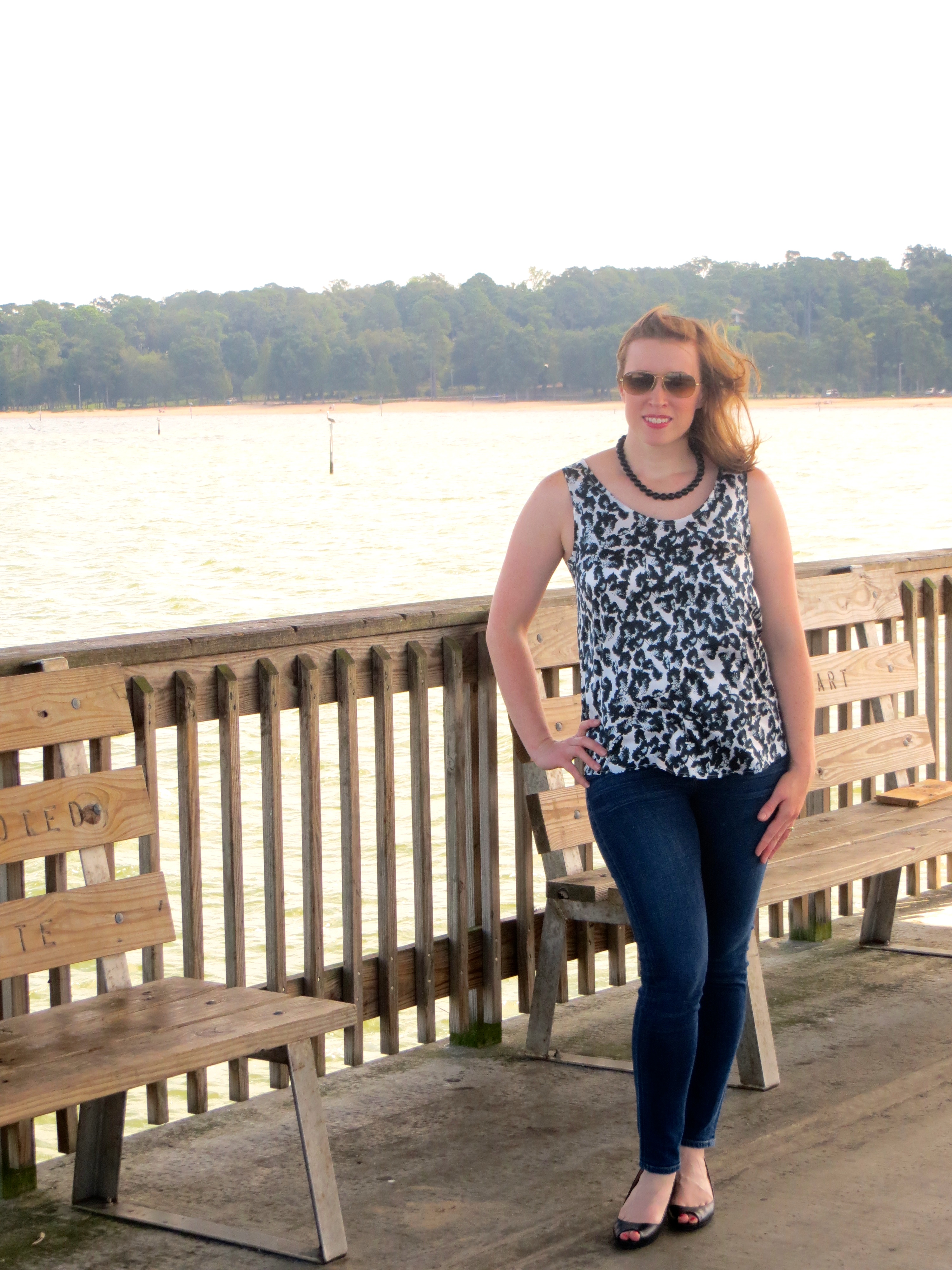 You already know I kept the shirt — I liked that it fit in the shoulders, had a work-appropriate neckline, had a cute hemline that dipped lower in the back to cover the tush, and upon closer inspection, has an awesome bird print all over the fabric. Plus the top has a built in cami so I don’t have to worry about finding a clean one.
