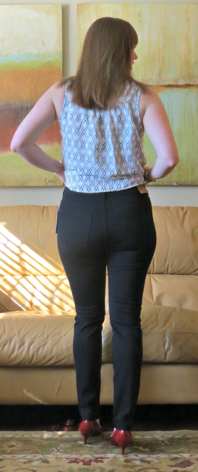 I paired the blouse with the black ponte skinny jeans by Liverpool. I have to tell you I was soooo skeptical about these pants when I first pulled them out. I warned my stylist in my online profile that I had a really hard time finding pants and jeans to fit properly. But let me tell you, I wanted to cry with joy when I slipped these babies on. They fit PERFECTLY!