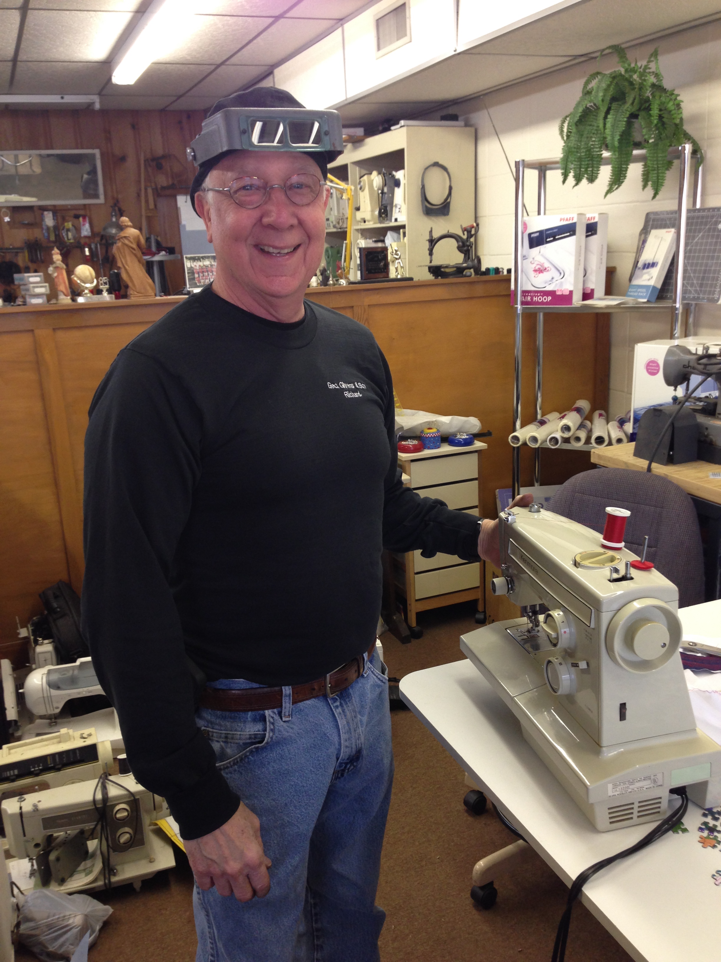Here’s a picture of Mr. Givens with my little Kenmore. You can start to get a glimpse of all the sewing machines that were laying around everywhere.