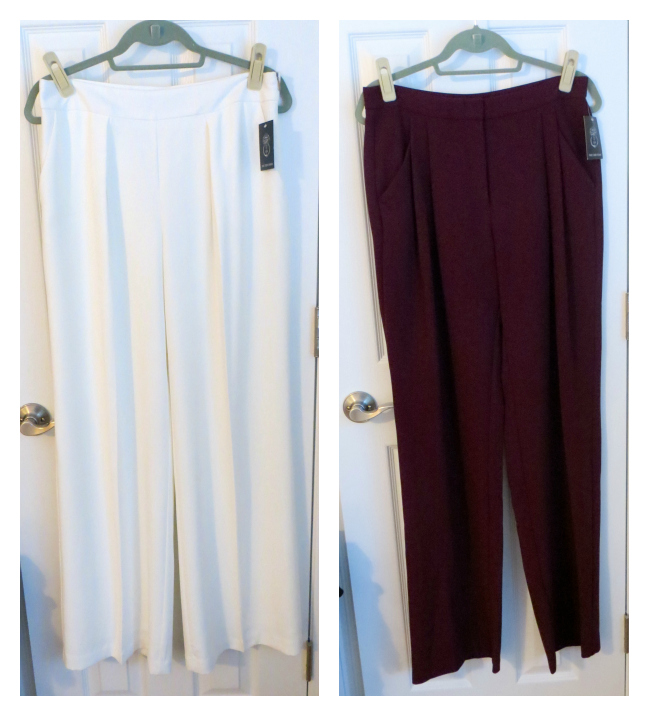 The other pair is the BCBGeneration Pleat Front Pant ($118) and is a machine washable merlot poly. They were very long so I was able to get them hemmed with a cuff added. I love these because of their menswear style.