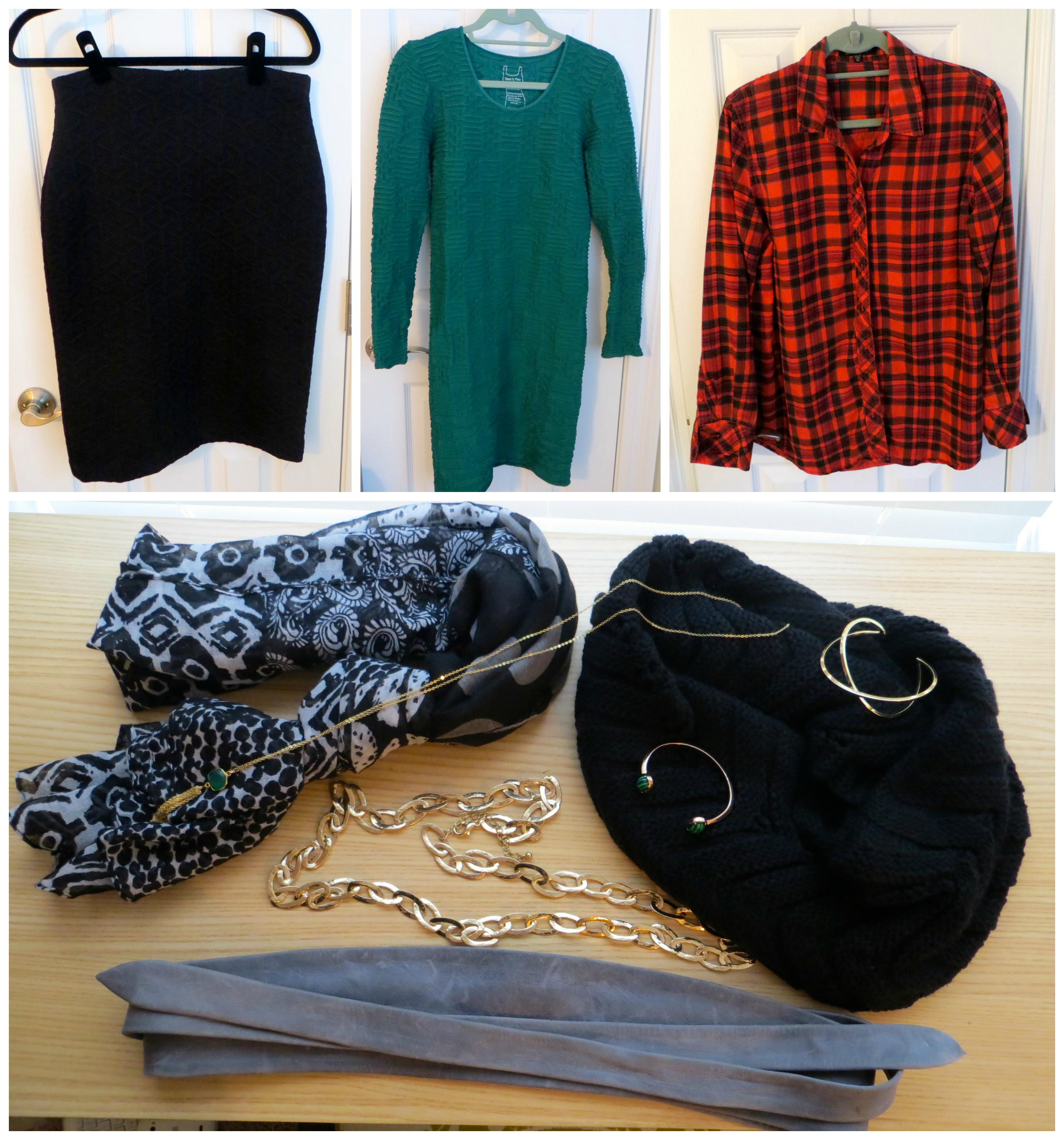 Then I got excited. And even more excited when I saw the sturdy, fashionable box the UPS man dropped off at my office. I ran home during my lunch break and quickly broke open my present to myself. Folded neatly inside was a black garment bag bursting at the seams. I took a quick assessment of what was inside. My stylist, Morgan, had grouped outfits into different categories based on outfits on my Pinterest page. Each set of garments contained coordinating accessories to compete the looks.