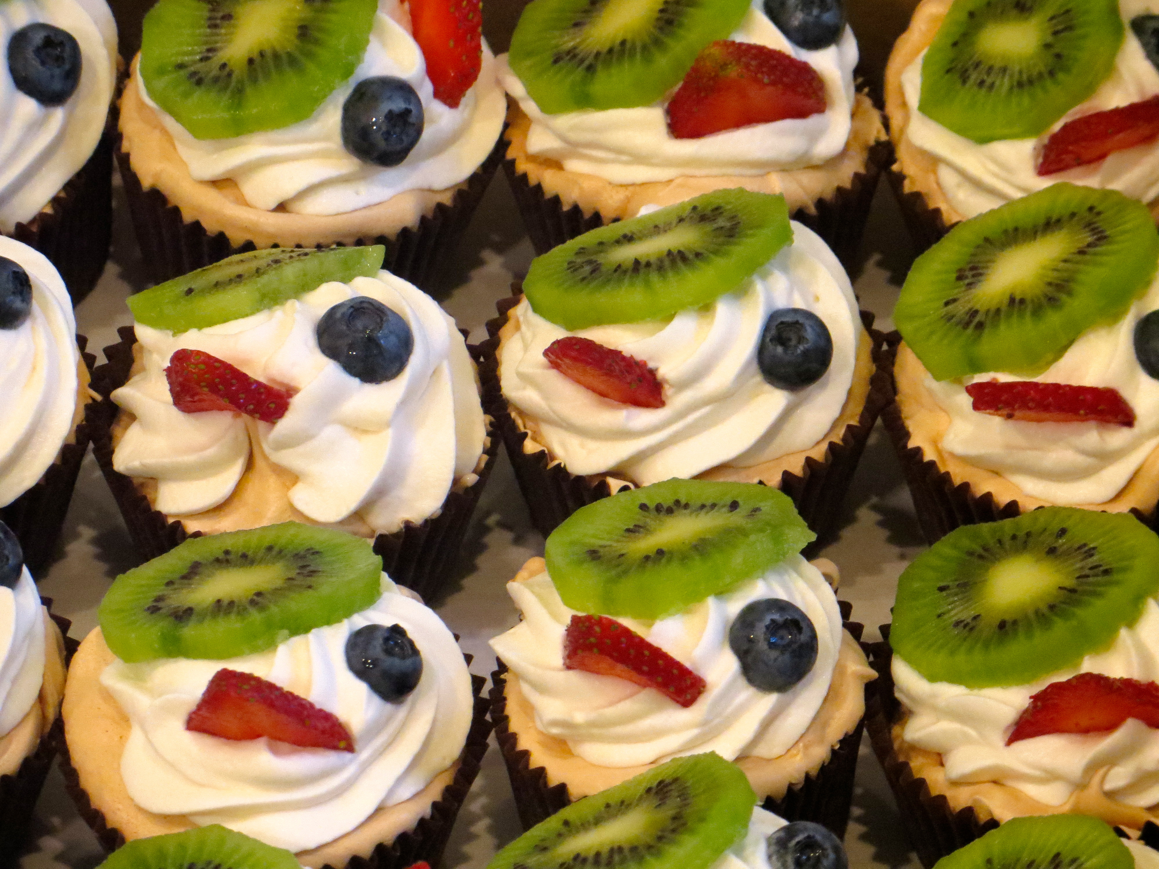 I spooned the whipped cream on top for the full-size Pavlova, but for the mini ones I piped the whipped cream on with a pastry bag and large closed star tip.  As for the fruit, you can make it as decorative (or not) as you would like.  It will taste great either way!