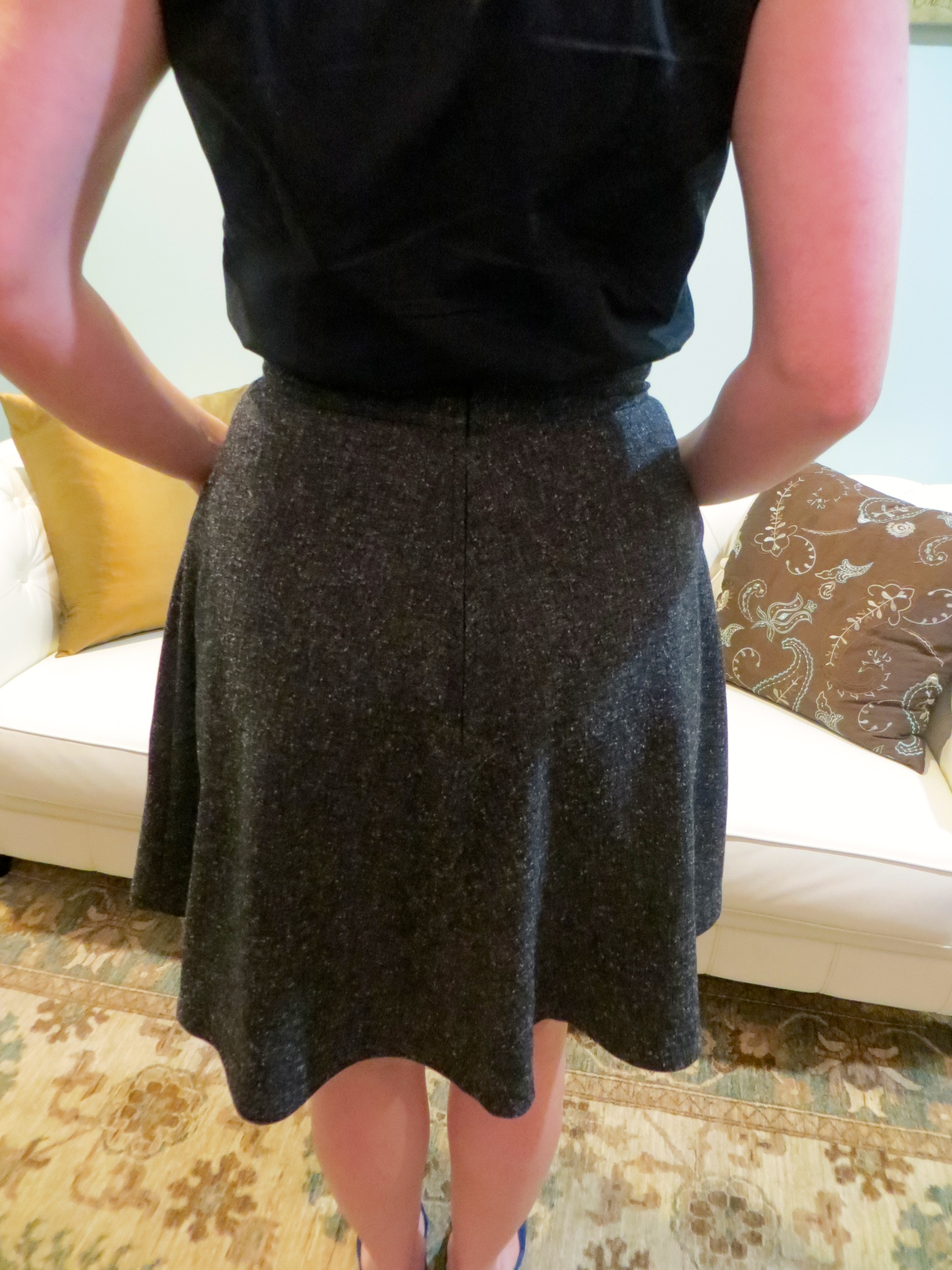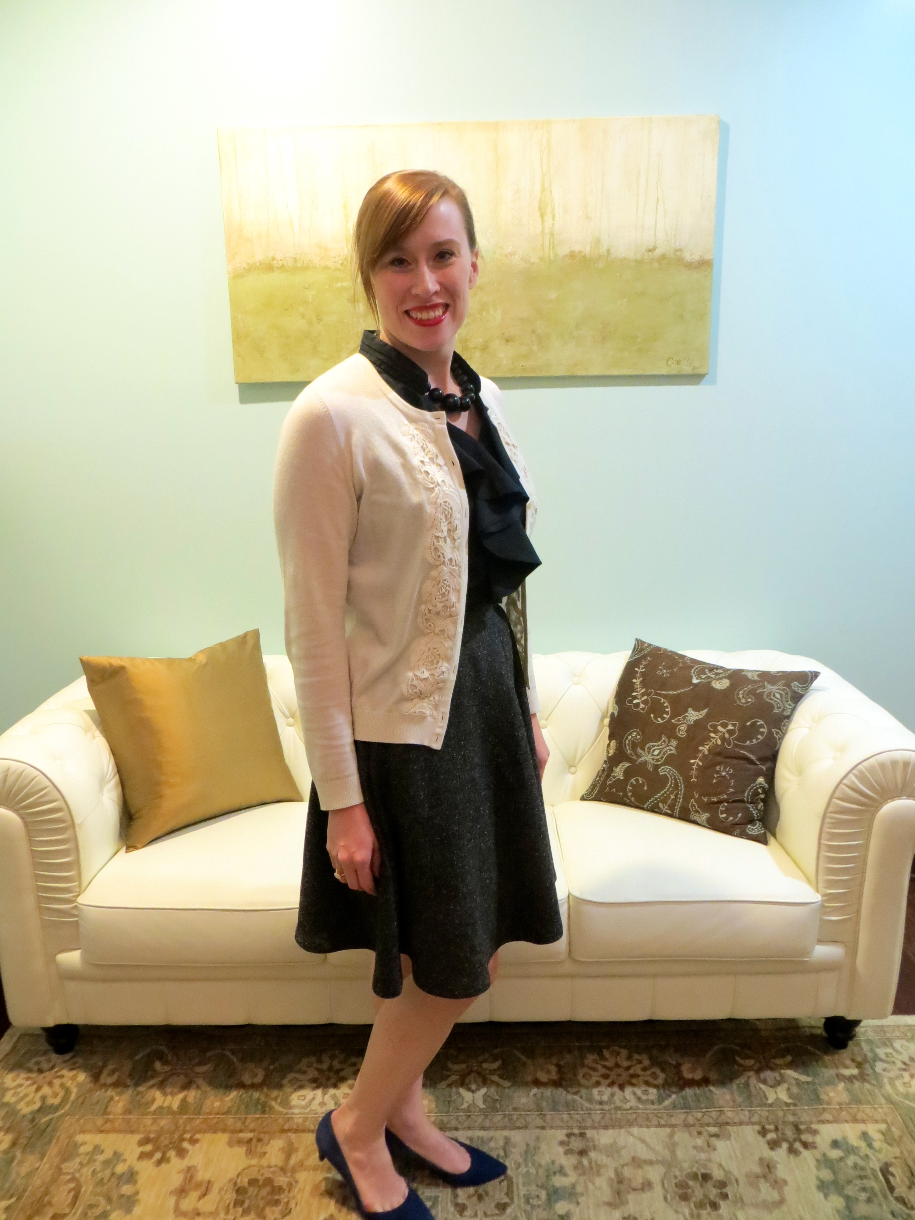 I also wore a blouse made from Vogue 1386, a Sandra Betzina pattern. This top was made by Sandra herself and gifted to me after our class over the holiday weekend. Thanks so much, Sandra, for a great class and this beautiful blouse! I paired the blouse with some slim jeans and animal skin slingbacks.